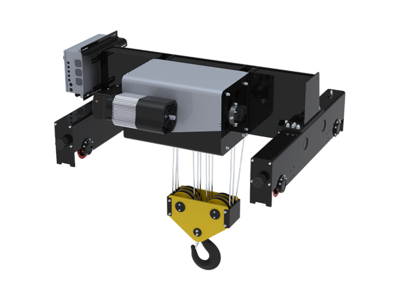 一、产品优势1、重量轻、免维护,工作级别M4-M6,变频电机、无级调速;2、电磁盘式制动器,使用寿命长,高强镀锌钢丝绳,低净空设计;3、大直径卷筒设计;4、智能,具备防摇摆,寸动,微动,定位、智能监控APP等。起升重量工作级别起升速度(m/min)起升功率(kw)运行速度(m/min)运行功率(kw)20t3m/M60.4/2.5(双速)0-2.5(变频)0.5/3.2(双速)0-3.2(变频)0.7/4(双速)0-4(变频)2.5/15153/18.518.50-312*0.6525t2m/M50-312*0.6530t1Am/M42.5/15153/18.518.53.5/23230-312*0.65起升高度(m)RH1重量7200020009200021201225002600